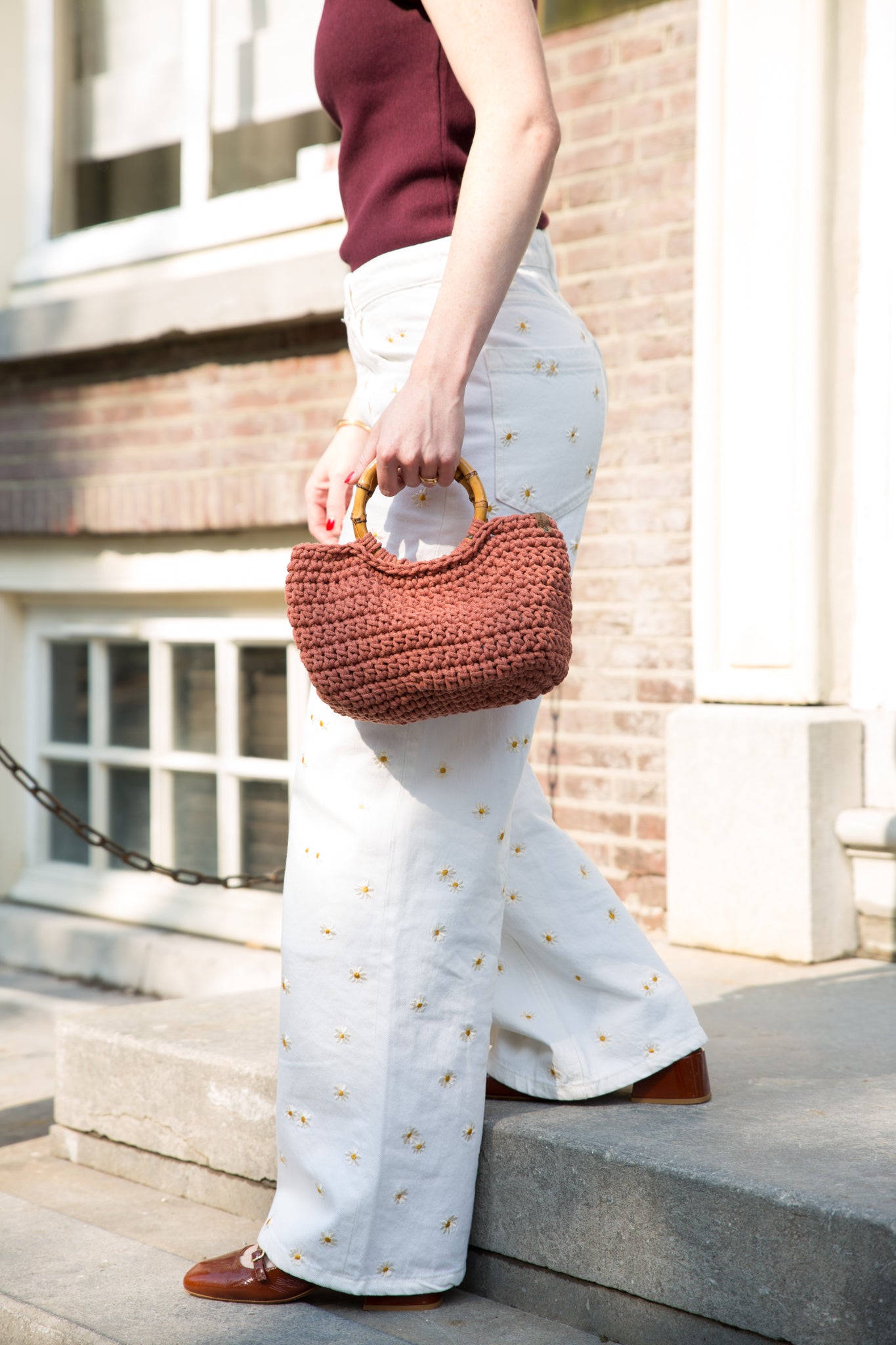 Of je haar nu aan je stuur hangt tijdens het fietsen, stijlvol om je arm draagt of los in de hand houdt – de Jasmijn tas past zich aan aan jouw dag en look. Het duurzame bamboe handvat geeft een warme, natuurlijke touch die elke outfit compleet maakt.